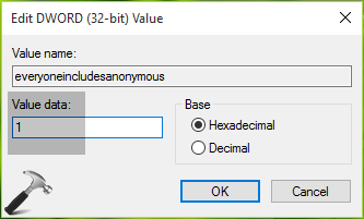3.Im rechten Bereich vonLsaSchlüssel, suchen Sie nach dem Registrierungs-DWORD (REG_DWORD) mit dem NamenjedereinschließenanonymDer Wert könnte auf 0 gesetzt sein. Doppelklicken Sie darauf, um den Wert zu ändern.