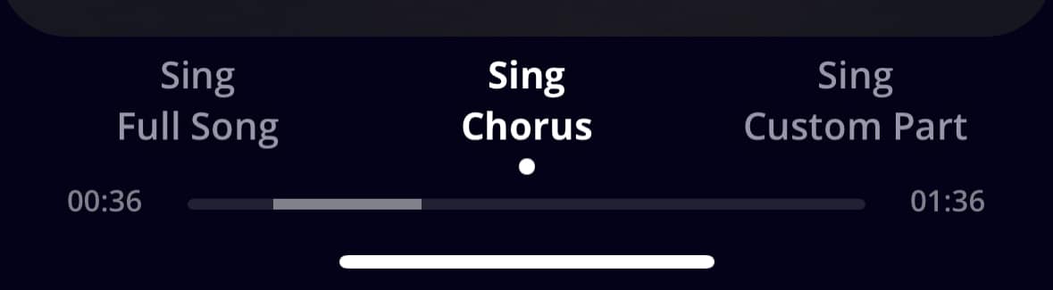 Sie können das gesamte Lied singen, nur den Refrain, oder einen benutzerdefinierten Teil auswählen, beispielsweise eine bestimmte Strophe oder einen Refrain. Wenn Sie jedoch nur ein kostenloses Abonnement haben, ist dies nur möglichSinge den Refrain des Liedes.