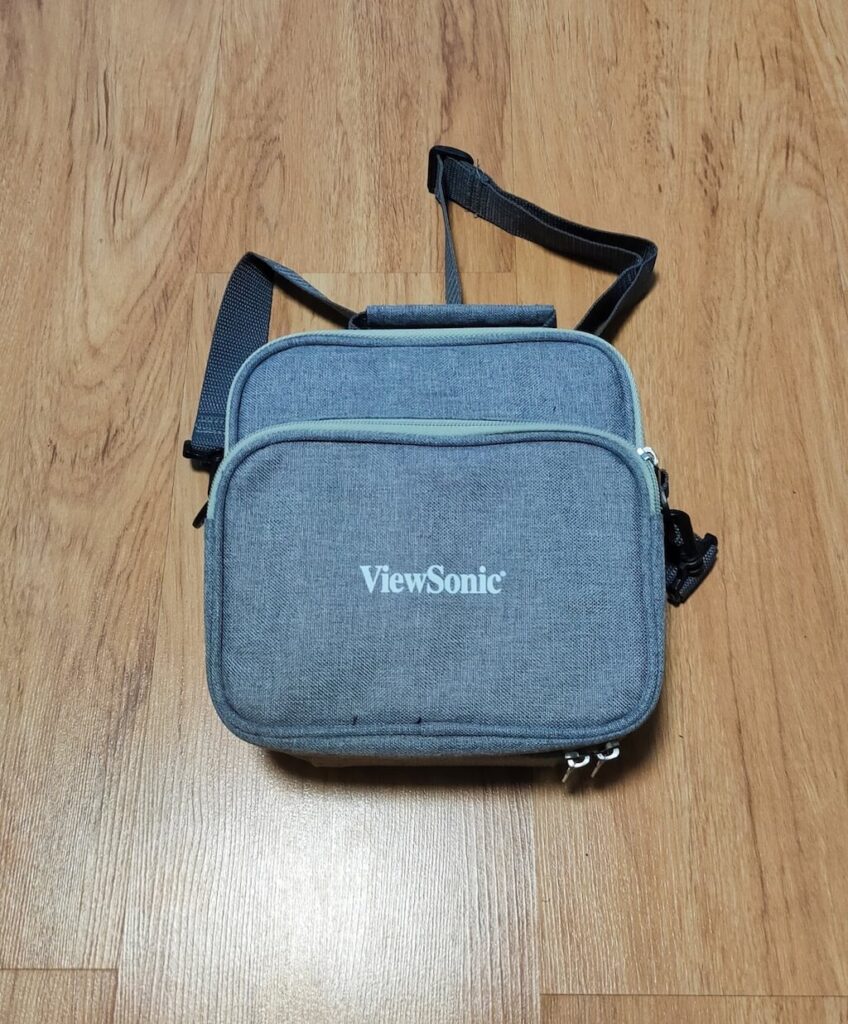 Der ViewSonic M2e verfügt über einige interessante Spezifikationen und Funktionen, insbesondere angesichts seiner Größe. Wenn Sie die Verpackung öffnen, finden Sie den Projektor, ein Netzkabel, eine Fernbedienung, eine Kurzanleitung und eine praktische Tasche für alles.