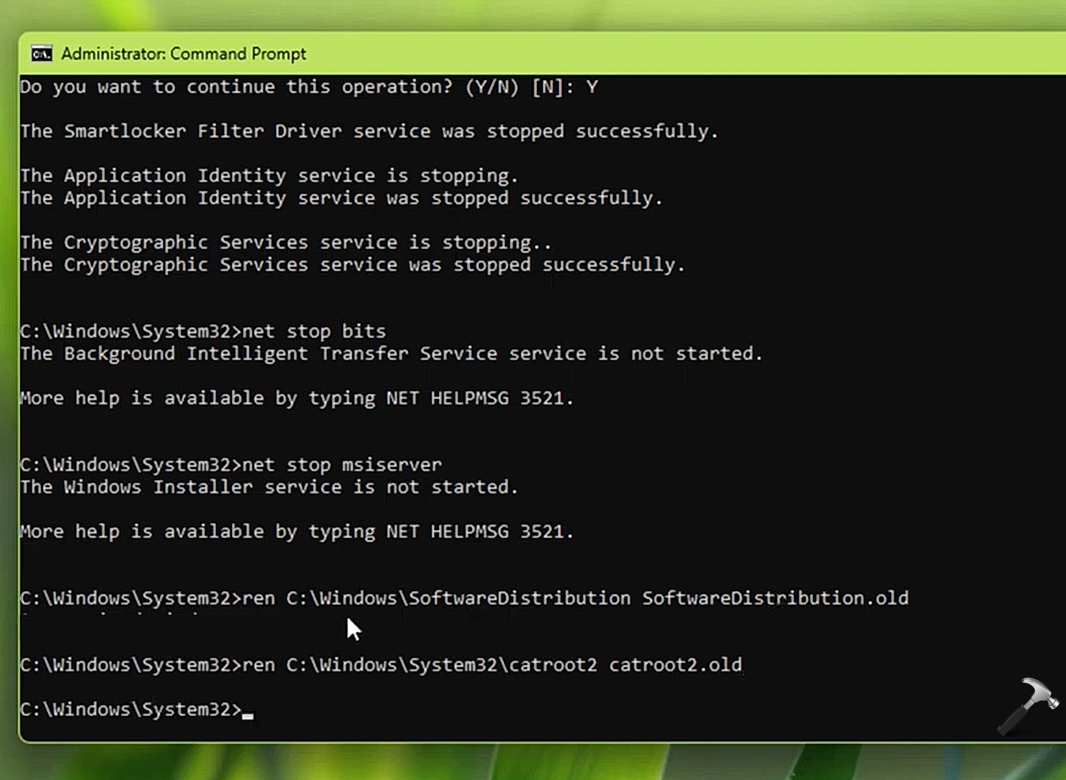ren C:WindowsSystem32catroot2 catroot2.old