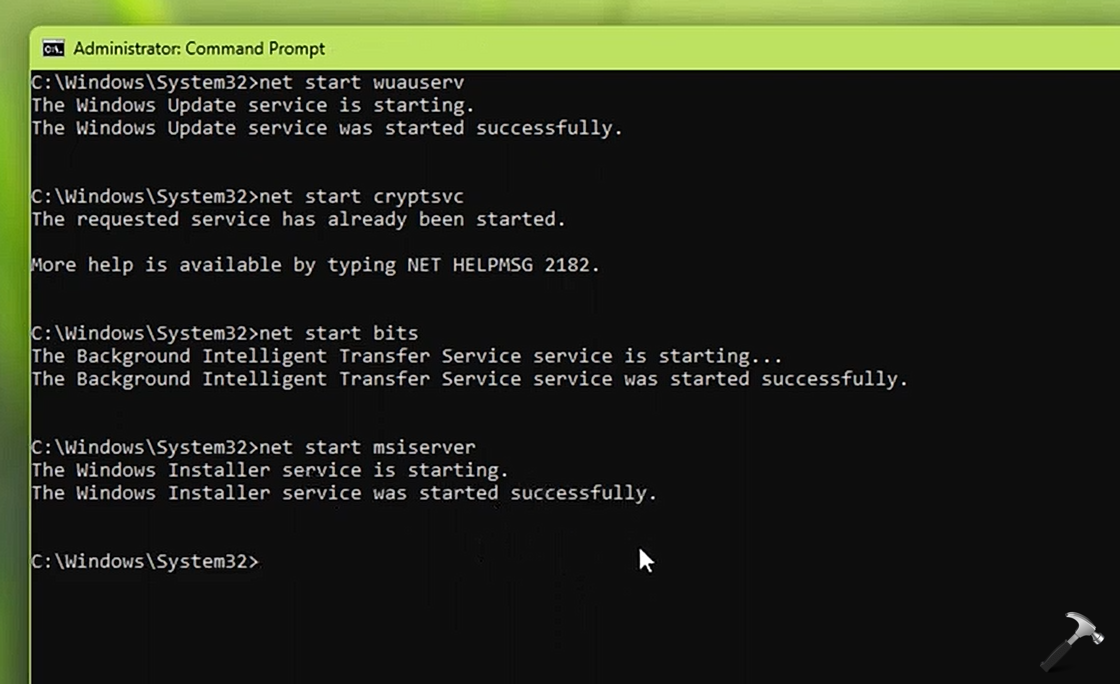 net start wuauserv