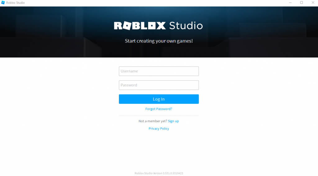 - Nach dem ersten Öffnen von Roblox Studio müssen Sie sich in Ihrem Roblox -Konto anmelden.