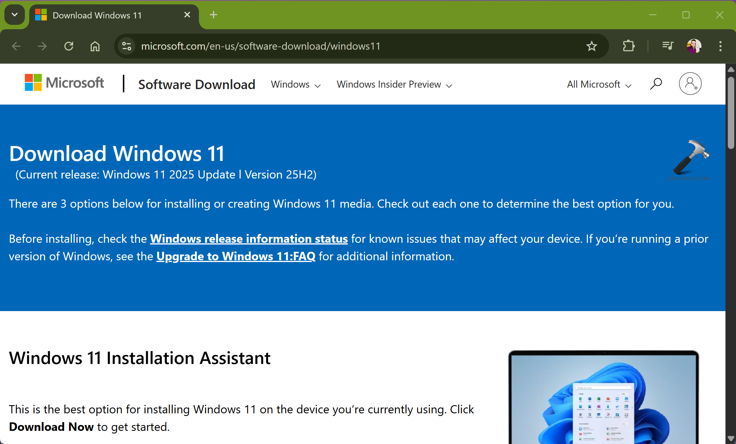 Version 25H2 ISO steht auf der öffentlichen Software-Download-Website von Microsoft zum Download bereit. Öffnen Sie Ihren Lieblingsbrowser und gehen Sie zuhttps://www.microsoft.com/en-us/software-download/windows11. Sobald die Seite geladen ist, werden Sie feststellen, dass die aktuelle Version als Version 25H2 erwähnt wird.