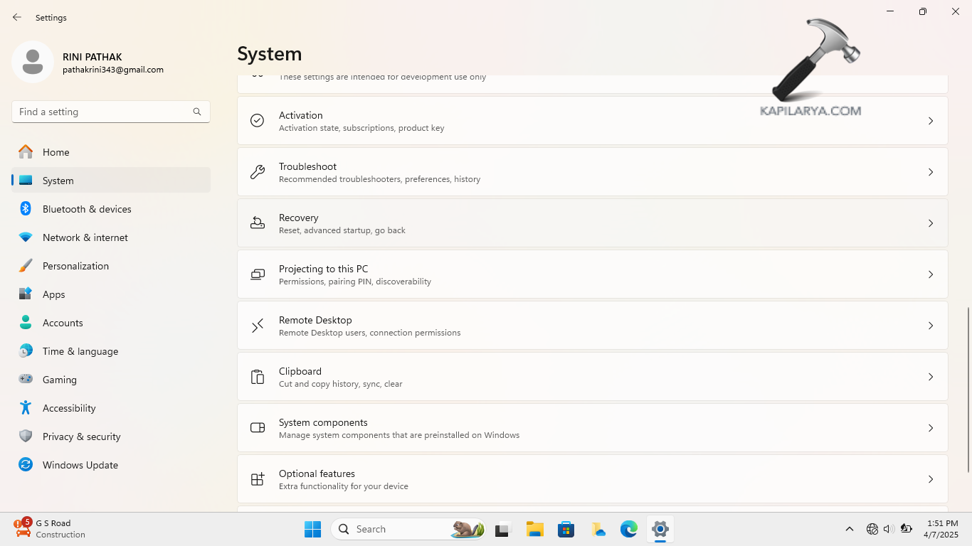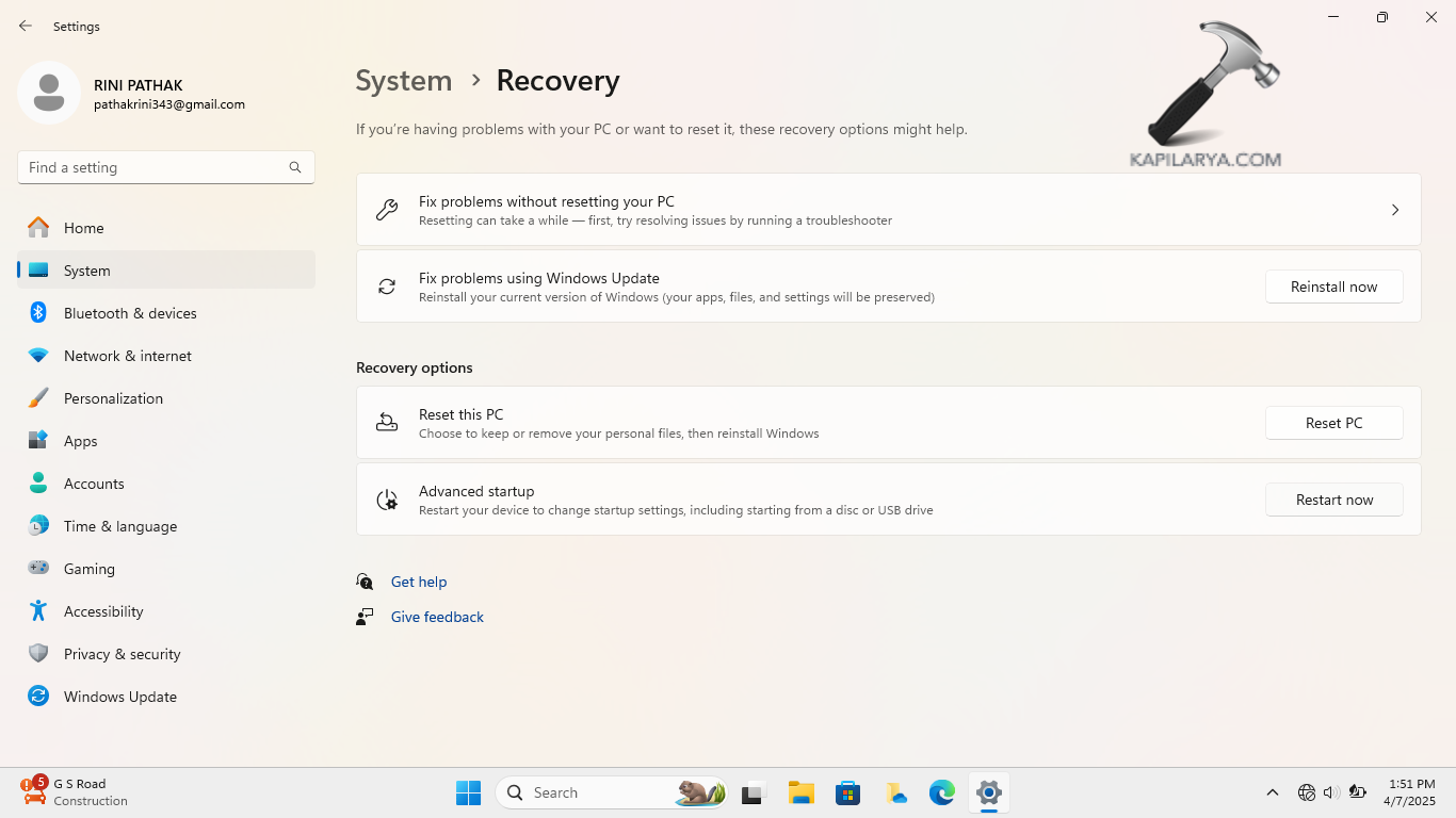 Schritt 1-Gehen Sie zunächst zu Einstellungen > System > Wiederherstellung.