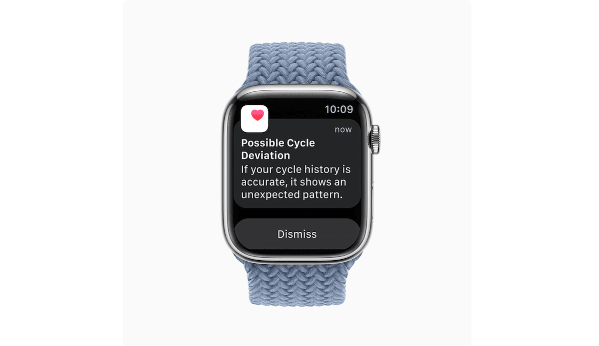 Darüber hinaus benachrichtigt die Zyklusverfolgung Benutzer über Abweichungen in ihrem protokollierten Zyklusverlauf, wie z. B. unregelmäßige, seltene oder längere Perioden und anhaltende Schmierblutungen, die Symptome eines zugrunde liegenden Gesundheitszustands bei iOS 16- und watchOS 9-Updates sein können.