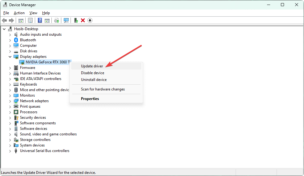 - Klicken Sie mit der rechten Maustaste auf Ihre Grafikkarte und klicken Sie dann auf Treiber aktualisieren.