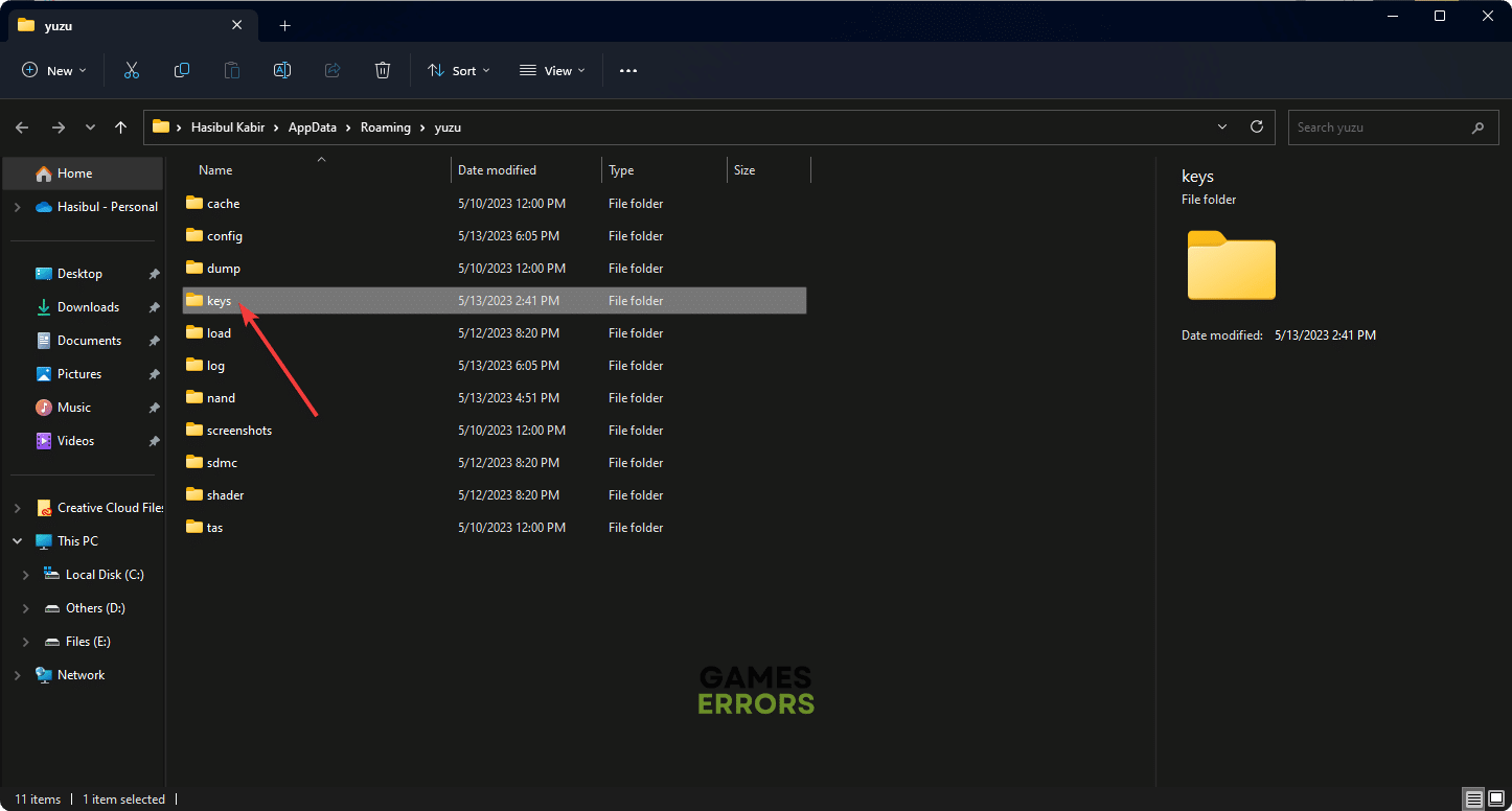 - Fügen Sie die heruntergeladenen Dateien prod.keys und title.keys in diesen Keys-Ordner ein.