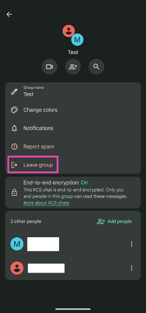 Verlassen Sie einen Gruppen-Textchat auf Android über das Gruppenmenü