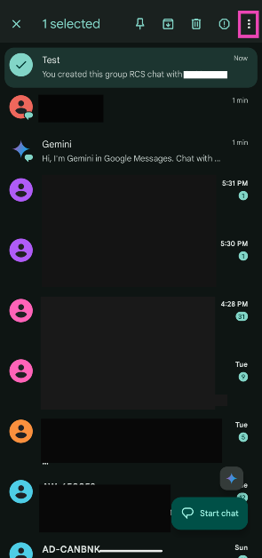 Verlassen Sie einen Gruppen-Textchat auf Android über den Posteingang