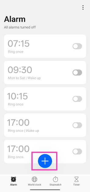 Schritt 2:Schlagen Sie diePlus-Symbolum einen neuen Alarm zu erstellen.