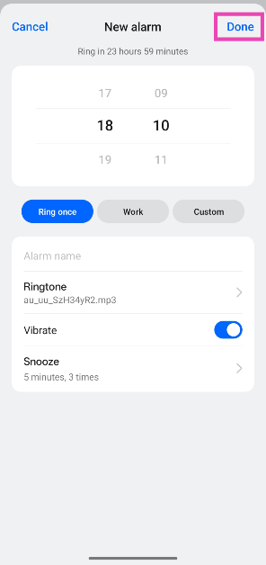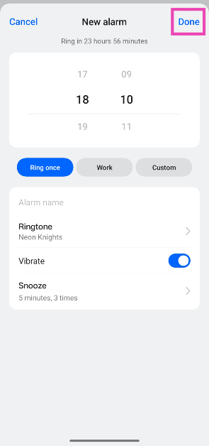Schritt 7:Gehen Sie zurück zur neuen Alarmseite und klicken SieErledigt.
