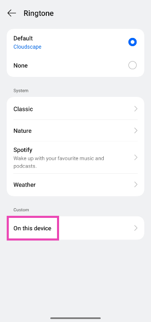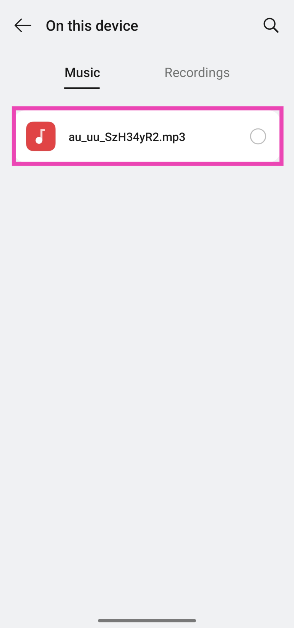 Schritt 6:Wählen Sie a ausLiedvon Ihrem Gerätinterner Speicher.