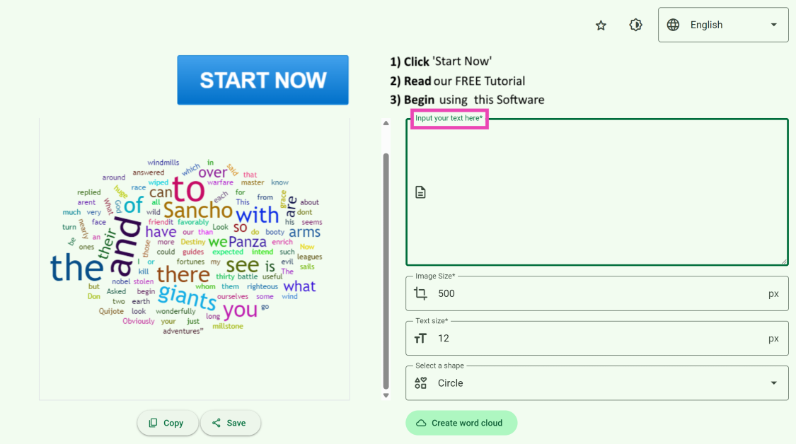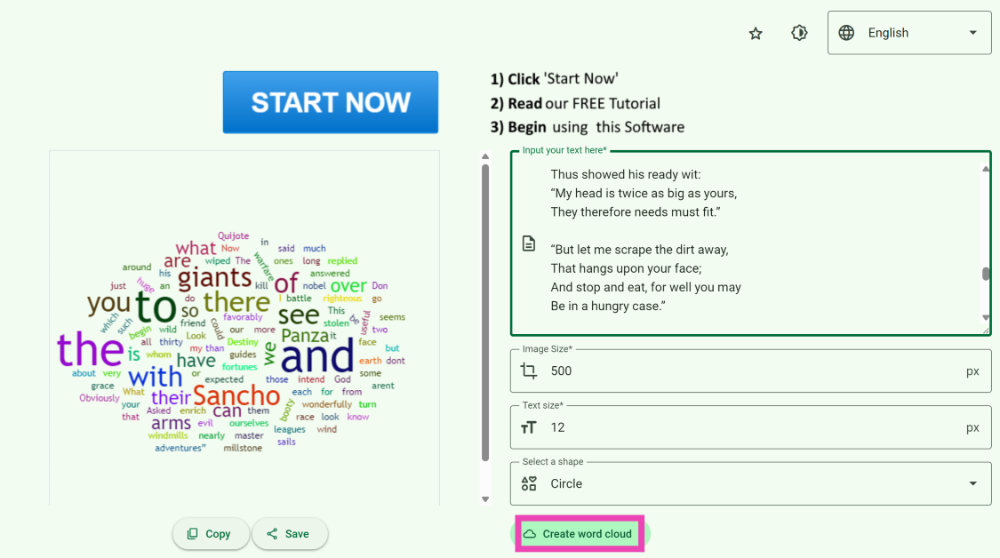 Schritt 4:Sobald die Wortwolke erstellt wurde, klicken Sie aufSpeichernKlicken Sie auf die Schaltfläche unter dem Bild, um es auf Ihr Gerät herunterzuladen.