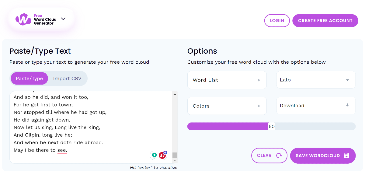 Schritt 1:Gehe zuhttps://www.freewordcloudgenerator.com/.