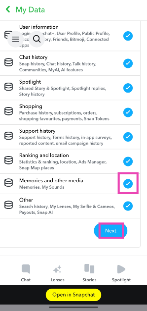 Verwenden Sie „Meine Daten“, um gelöschte Snapchat-Erinnerungen wiederherzustellen