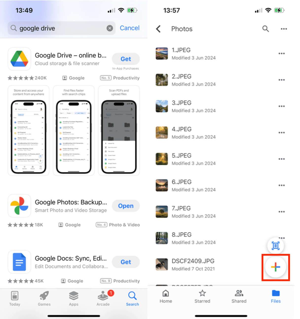 Zuerst müssen Sie Fotos von Ihrem iPhone auf Google Drive hochladen. Gehen Sie dazu folgendermaßen vor: