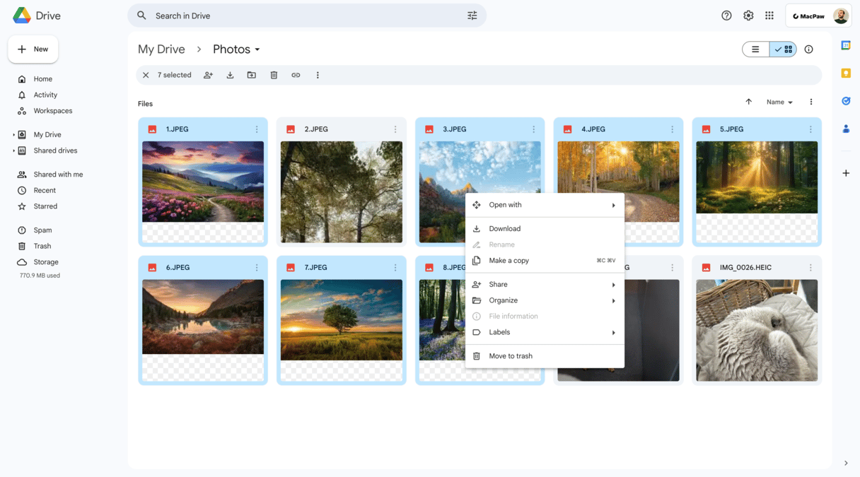 - Klicken Sie auf das Menüsymbol mit den drei Punkten oder klicken Sie mit der rechten Maustaste und wählen Sie „Herunterladen“, um die Fotos auf Ihrem Computer zu speichern.