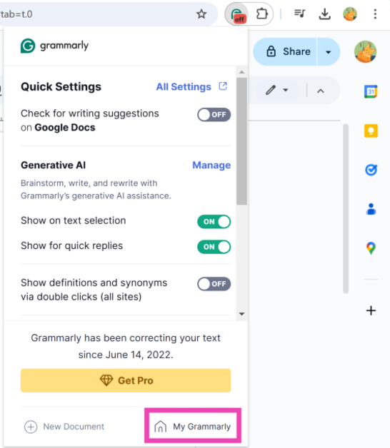 Wenn die Grammarly-Erweiterung in Google Docs nicht funktioniert, aktualisieren Sie das Dokument oder gehen Sie zurück und öffnen Sie es erneut.