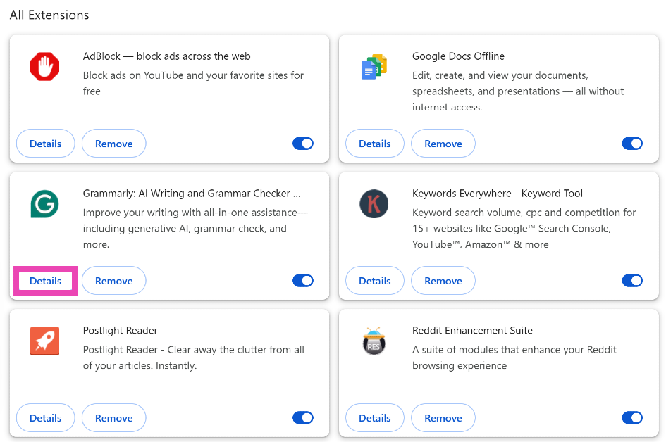 Manchmal reagiert die Grammarly-Erweiterung für Chrome aus heiterem Himmel nicht mehr. Es ist auch möglich, dass Sie die Erweiterung versehentlich deaktiviert haben.