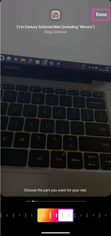 Schritt 5:Benutzen Sie dieBar suchen, um den Teil des Liedes auszuwählen, den Sie als Hintergrundmusik für Ihr Reel wünschen.