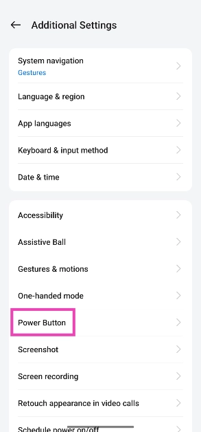 Schritt 3:Tippen Sie aufHalten Sie die Taste gedrückt Power-Taste.