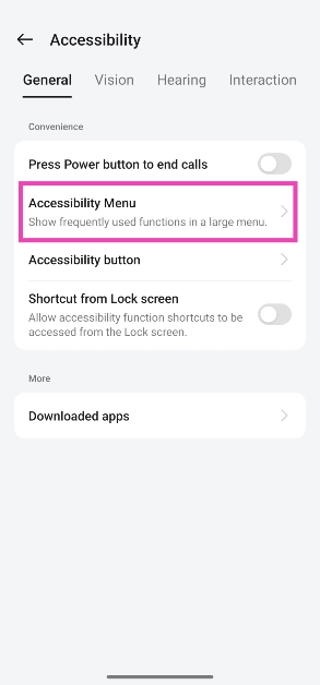 Schritt 3:WählenMenü „Barrierefreiheit“..
