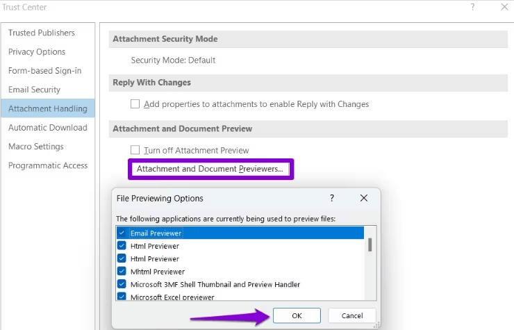 Wenn Sie die Vorschauoption in Outlook deaktiviert haben, tritt möglicherweise das Problem „Anhänge werden in Outlook nicht angezeigt“ auf. Sie können die Einstellungen für die Handhabung von Anhängen anpassen, um das Problem zu beheben.