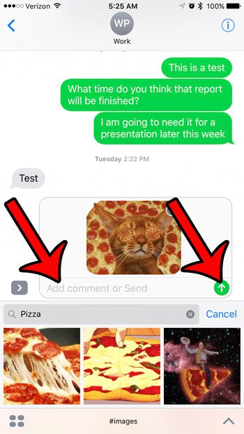 Schritt 5: Fügen Sie zusätzlichen Text hinzuKommentar hinzufügen oder sendenTippen Sie dann auf die Pfeilschaltfläche, um die GIF-Datei zu senden.