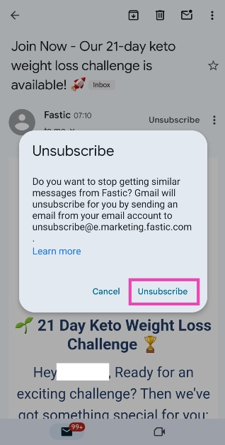 Schritt 3:Schlagen Sie dieAbbestellenneben dem Namen des Absenders.