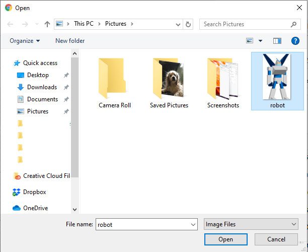 - Wählen Sie dieBildOption und wählen Sie dann den Speicherort des Bildes aus, das hinzugefügt werden soll.