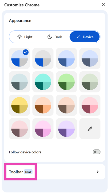 Klicken Sie auf die Ellipsen und gehen Sie zuWeitere Tools > Chrome anpassenund klicken Sie auf die Symbolleiste, um Änderungen daran vorzunehmen.