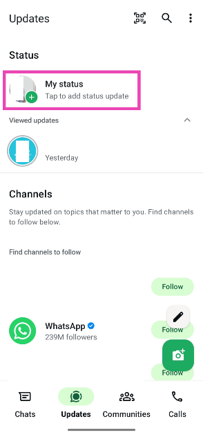 Schritt 1: StartenWhatsApp Messengerauf Ihrem Telefon und gehen Sie zuAktualisierungenTab.
