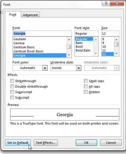 - Wählen Sie die Schriftart und klicken Sie dannAls Standard festlegen.