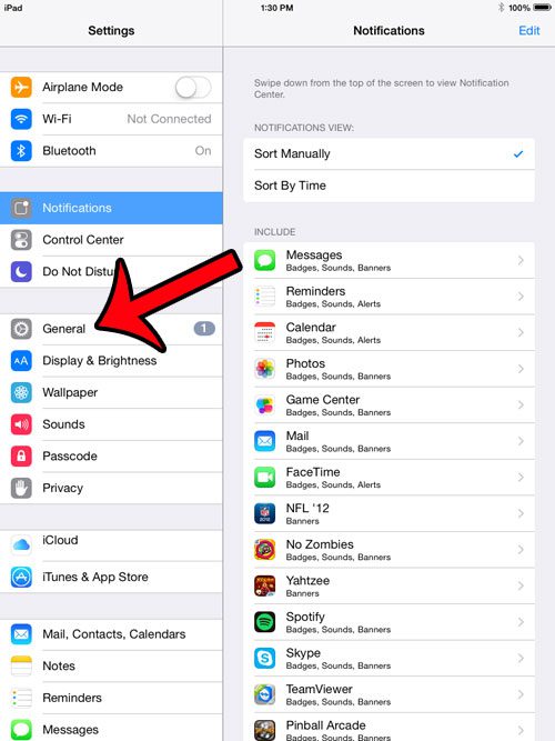 - Schritt 2: Wählen Sie ausAllgemeinOption aus der Spalte auf der linken Seite des Bildschirms.