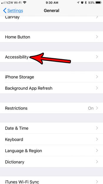 Schritt 3: Scrollen Sie nach unten und wählen Sie ausZugänglichkeit.