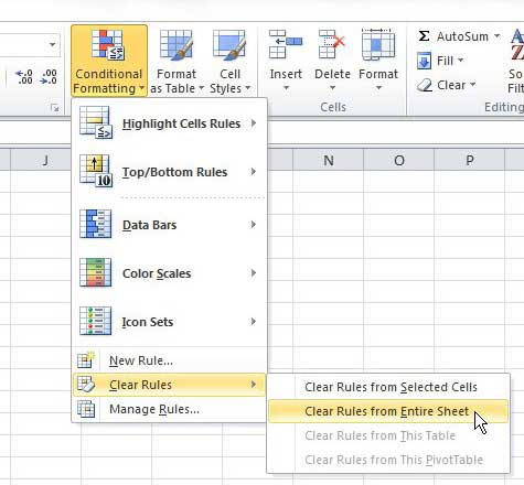 So entfernen Sie alle bedingten Formatierungsregeln aus einer Excel 2010-Tabelle (Anleitung mit Bildern)