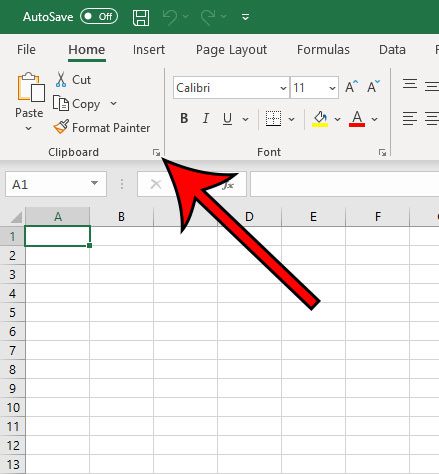 Schritt 3: Klicken Sie auf das kleine Dialogfeld-Startprogramm in der unteren rechten Ecke desZwischenablageAbschnitt des Bandes.