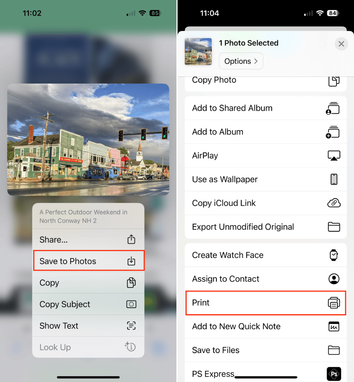 - Drücken Sie lange auf das Foto, um das Popup-Menü zu öffnen.