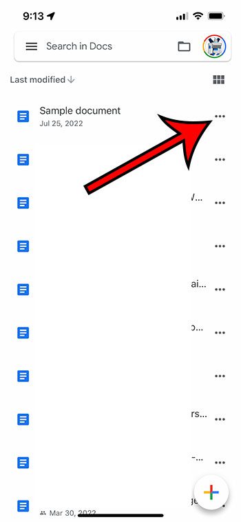Schritt 2: Berühren Sie die drei Punkte rechts neben einem der aufgelisteten Dokumente.