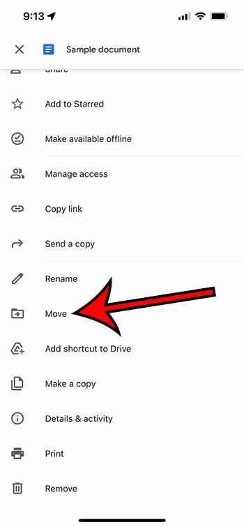 Schritt 3: Wählen Sie ausBewegenOption aus dem Dropdown-Menü.