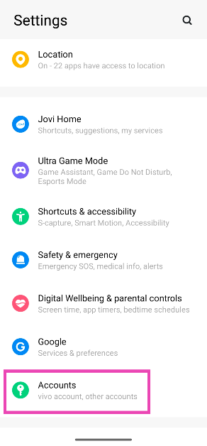 Schritt 1:Auf deinemAndroid-Smartphone, geh zuEinstellungenund auswählenKonten.