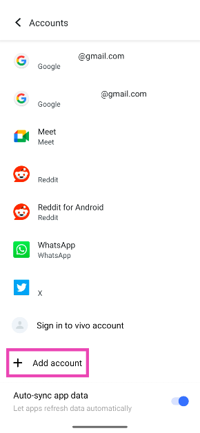 Schritt 2:Scrollen Sie nach unten und wählen Sie ausKonto hinzufügen.