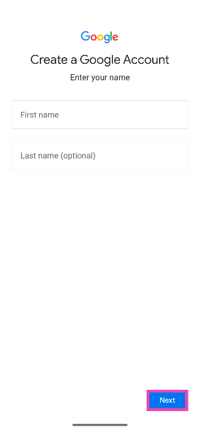 Schritt 5:Geben Sie Ihre einVornameUndNachname. SchlagNächste.