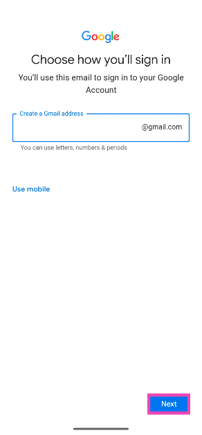 Durch das Erstellen eines neuen Kontos über die Einstellungen Ihres Telefons wird der Prozess zur Überprüfung der Telefonnummer umgangen. Gehe zuEinstellungen > Konten > Konto hinzufügen > Google > Konto erstellenum mit dem Prozess zu beginnen.