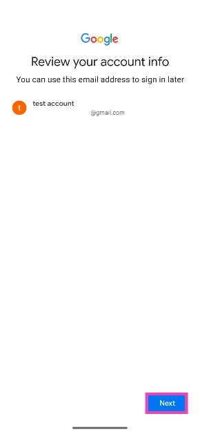 Schritt 8:Überprüfen Sie Ihre Kontodaten und klicken SieNächste.