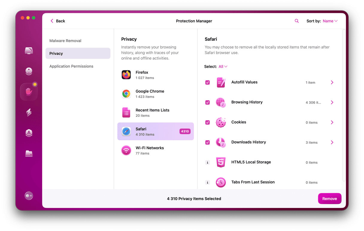 Das alles manuell zu erledigen, würde viel Zeit und Mühe kosten. Glücklicherweise müssen Sie das nicht – das Datenschutzmodul von CleanMyMac kann es für Sie erledigen. Es scannt Ihren Mac, sammelt Informationen darüber, für welche Apps Berechtigungen festgelegt sind, und ermöglicht Ihnen, diese einfach zu überprüfen und zu ändern. Außerdem können Sie mit nur einem Klick den Browser-Cache, Cookies, die Liste Ihrer zuletzt verwendeten Elemente und die Liste der Wi-Fi-Netzwerke löschen. Sie können es hier kostenlos herunterladen. Sobald die App installiert ist, müssen Sie nur noch in der Seitenleiste auf „Datenschutz“ gehen und auf „Scannen“ klicken. Anschließend zeigt CleanMyMac mit einem Klick an, was entfernt werden kann, um den Datenschutz zu verbessern.