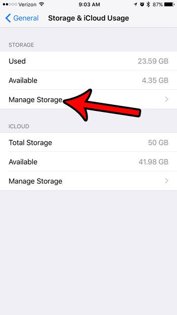 Schritt 4: Wählen Sie die ausSpeicher verwaltenOption unter derLagerungAbschnitt.