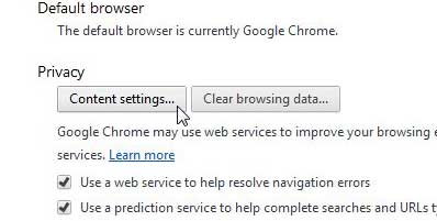 Schritt 4: Klicken Sie auf dieInhaltseinstellungenTaste in derPrivatsphäreAbschnitt des Fensters.