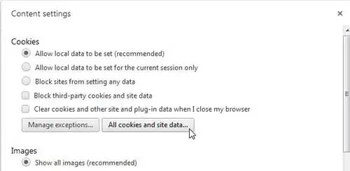 Schritt 5: Klicken Sie auf dieAlle Cookies und Site -DatenTaste in derKekseAbschnitt des Fensters.