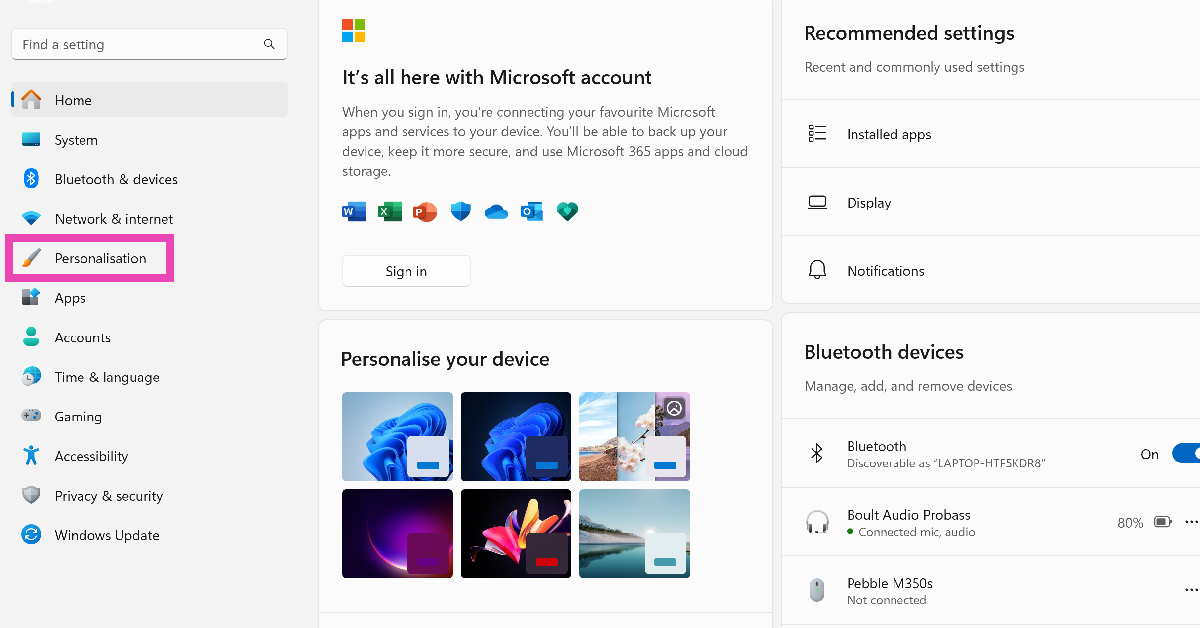 Schritt 2:Wechseln Sie zumPersonalisierungTab.